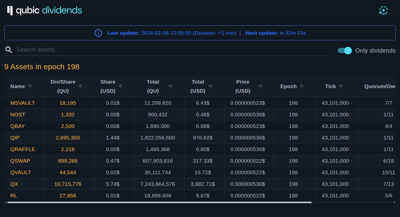 - Qubic Dividends