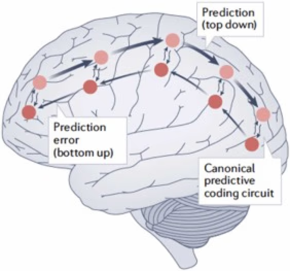予測符号化は、意識を研究するための最も影響力のあるフレームワークの1つです。脳は、世界のモデルを継続的に生成し、予測誤差を最小化することでそれらを更新する予測システムとして機能します(Friston, 2010; Clark, 2013)。信号機が緑ではなく突然青に変わった場合、感覚システムはその予期せぬ信号を上位に送り、高次システムは信号機がどのように振る舞うかという内部モデルを更新します。このフレームワークの中では、意識は内部信号と外部信号を首尾一貫した表現へと統合するものとして理解することができます。