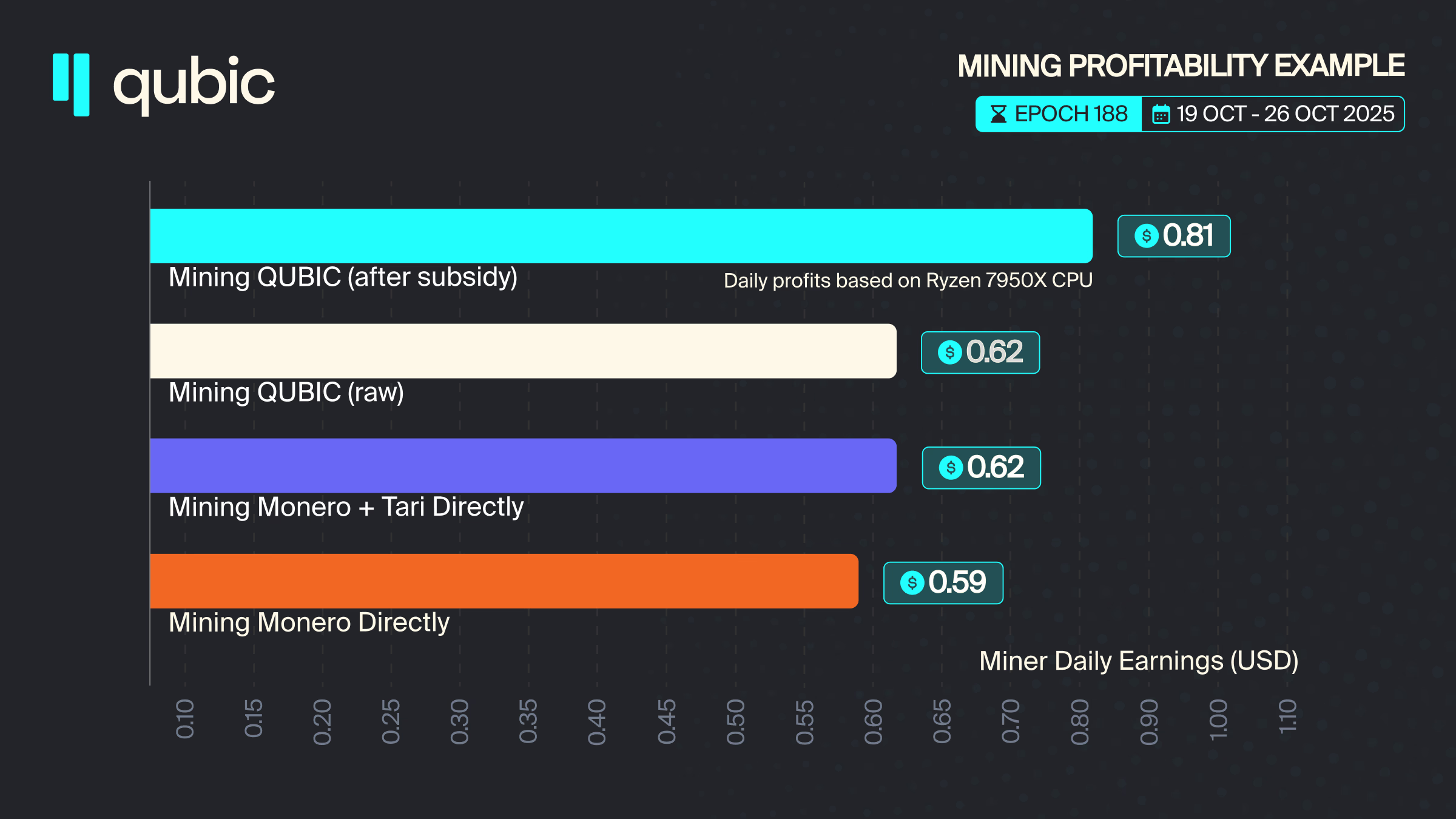 影響: Qubic が CPU ハッシュパワーにとって最も魅力的な目的地であることを保証し、ネットワークの UPoW 計算能力を確保します。