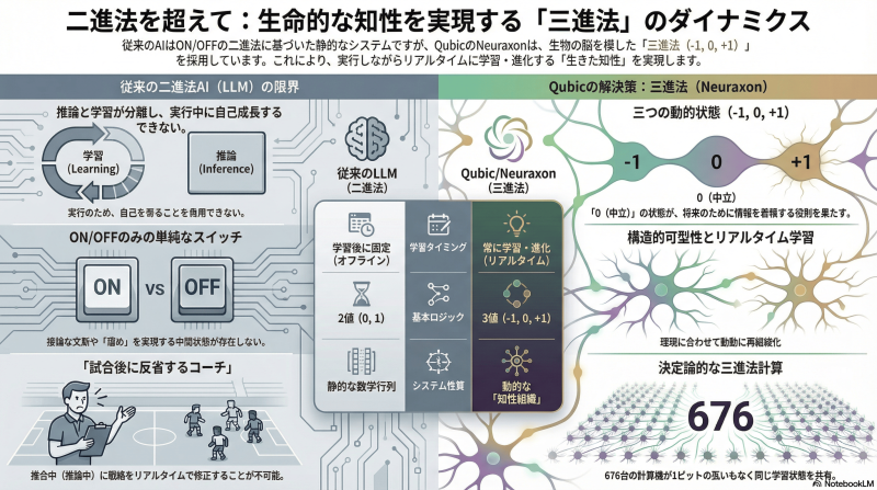 • 将来的には「メモリスタ」などの次世代デバイスにより、物理レベルでこの三進法ダイナミクスを再現するハードウェアの登場が期待されます。