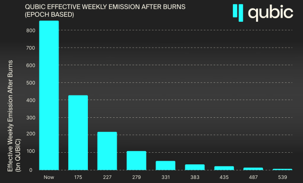 1. バーン率が15%から55%に上昇します。これは、毎週1兆QUBICの排出のうち、5,500億QUBICが流通から恒久的に取り除かれることを意味します。