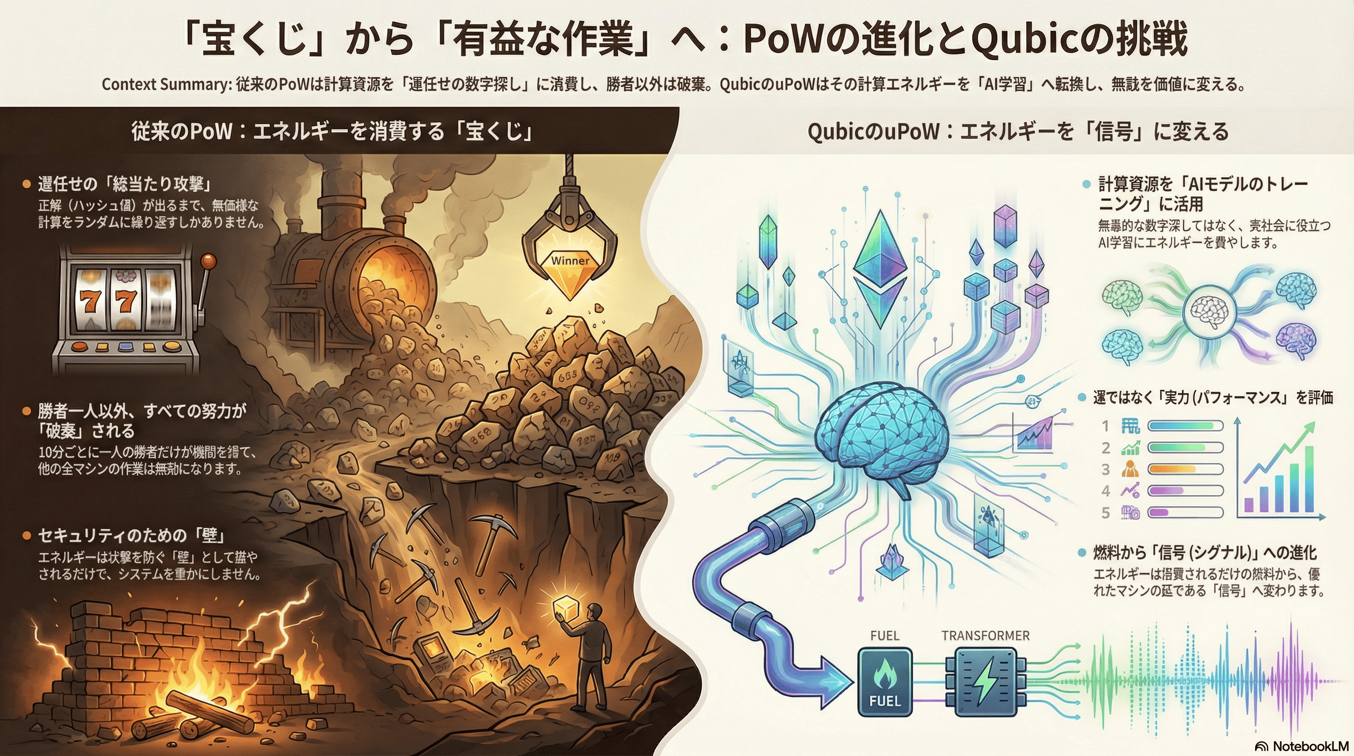 Qubi cはこの無駄を排除し、エネルギーを「知能」と「能力の証明」に変換します。