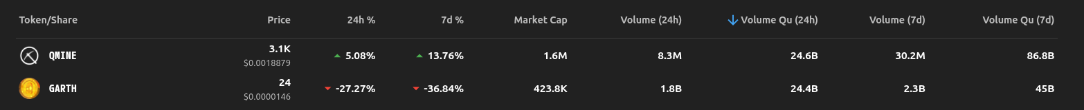 (to Gemini)以下、確認をお願いします。 市場への影響調査: Qfront などのエクスプローラーを使って、実際にどれくらいの量の Garth が売られ、価格にどのような影響が出ているか調査しましょうか?