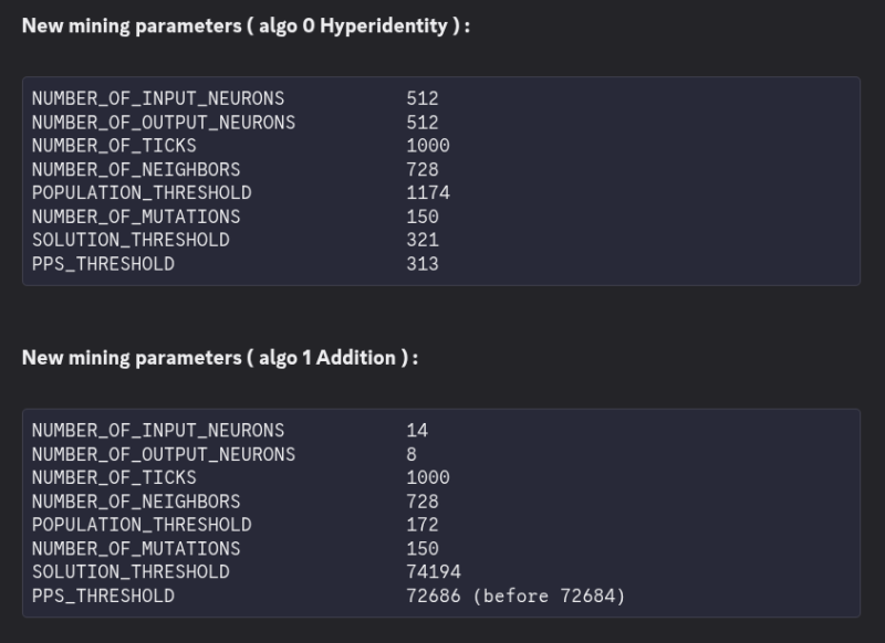 なお、ここで示されている数字は AI トレーニングの内部係数であり、マイニング報酬と直接リンクしません。
