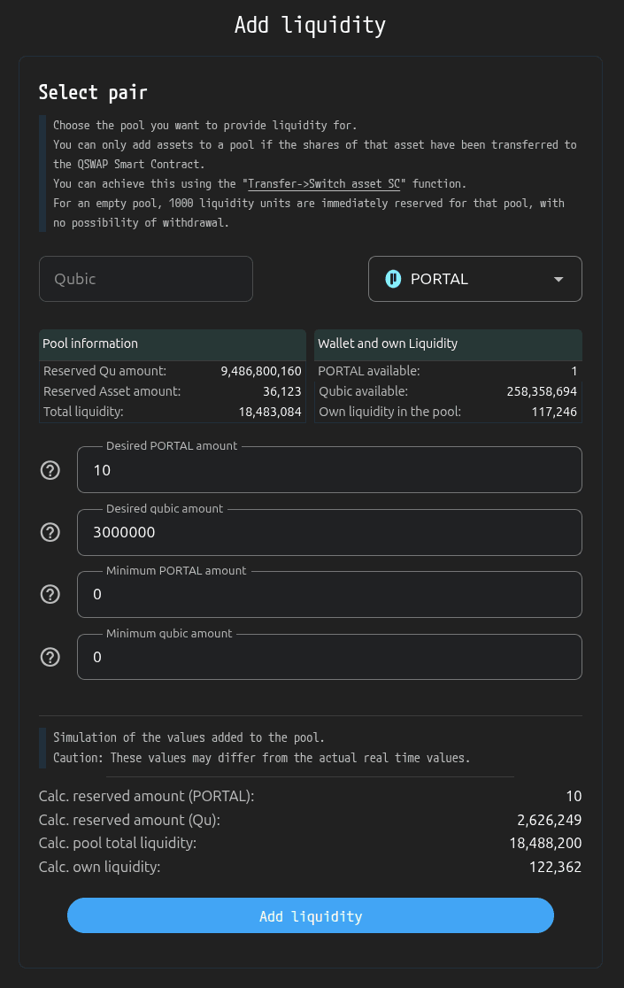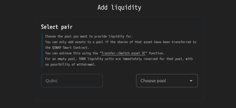 QSwap (SC) の流動性プールは、Qubic ネットワークの中でトークンのペア(集合体)をロックすることでトークン間のバランスを作り出し、中央集権的なオーダーブック(板)を介さず、ユーザー同士で直接、24時間365日いつでも資産を交換することを可能にしています。