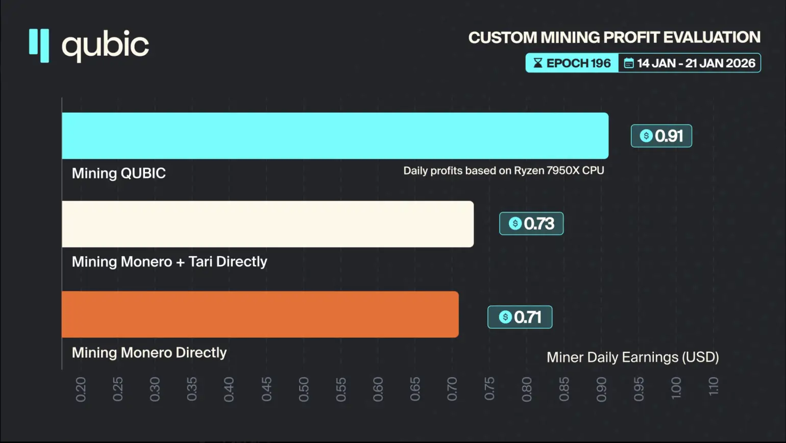 Qubic の CPU マイニングは、日次収益において従来の PoW セットアップを凌駕し続けています。